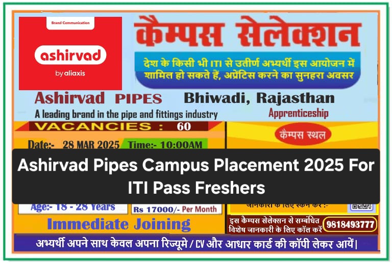 Ashirvad Pipes Campus Placement 2025 For ITI Pass Freshers |